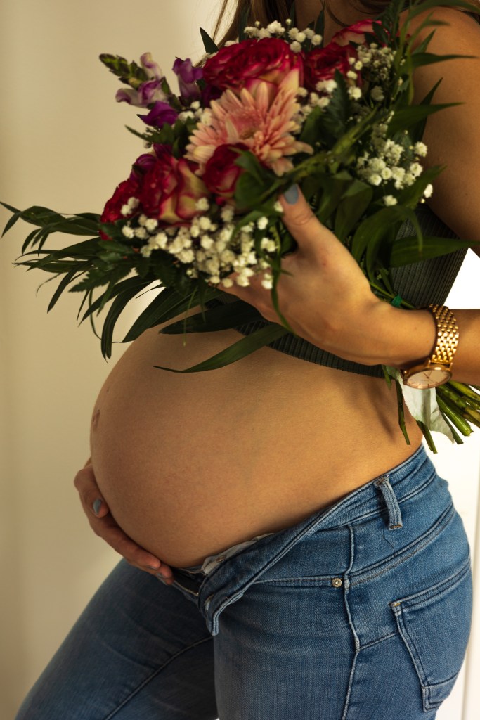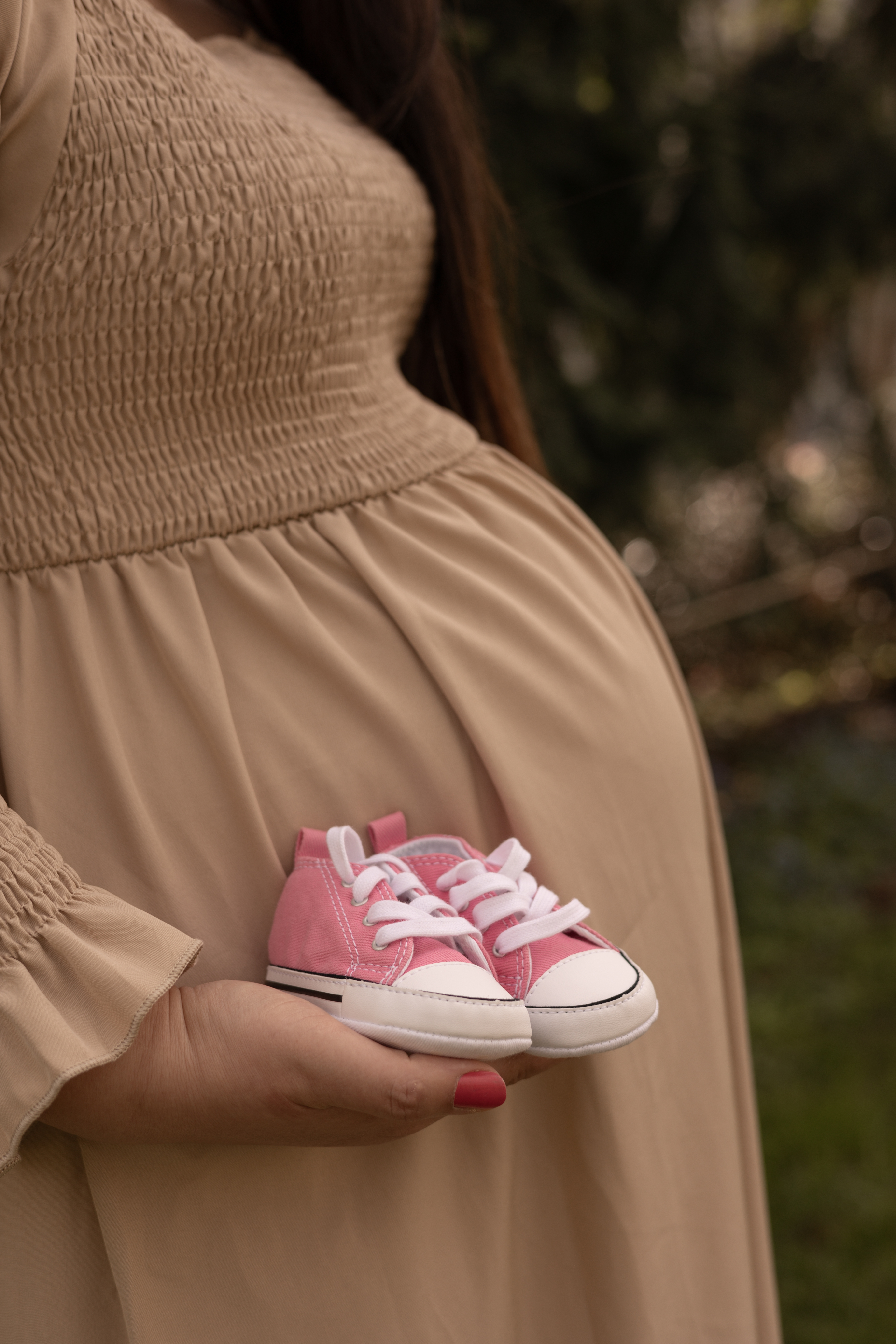 Gern könnt Ihr persönliche Elemente bei Euren Babybauchfotos einbringen. Accessoires, wie Babyschuhe oder ein Ultraschallbild, verleihen Euren Bildern eine noch persönlichere Note.